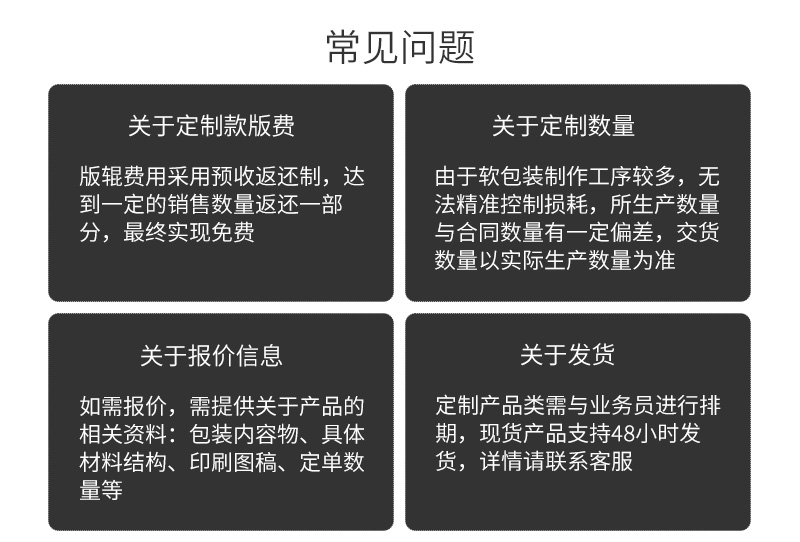 只要用了我們的包裝,不管是包裝膜的問題還是包裝機(jī)的問題,都是我們的問題!只要有質(zhì)量問題,馬上召回,不管有多遠(yuǎn)!